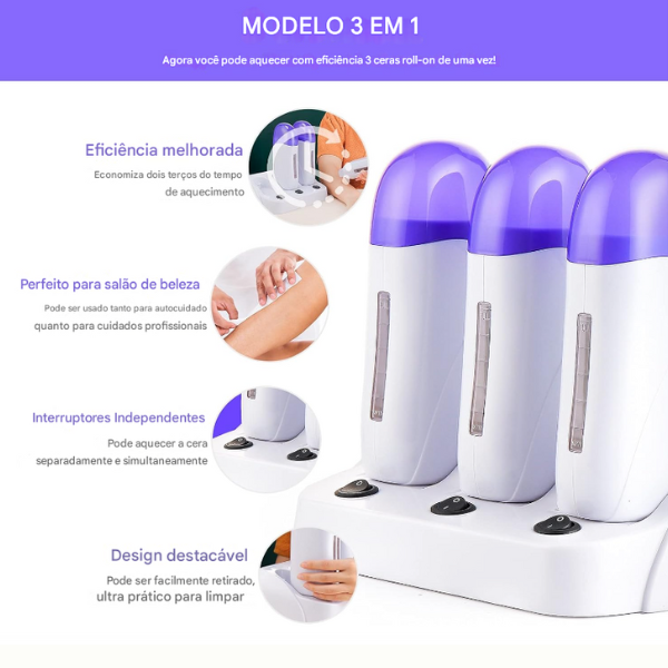 A Base Roll On Tripla é um equipamento de depilação para aquecer a cera em roll on.