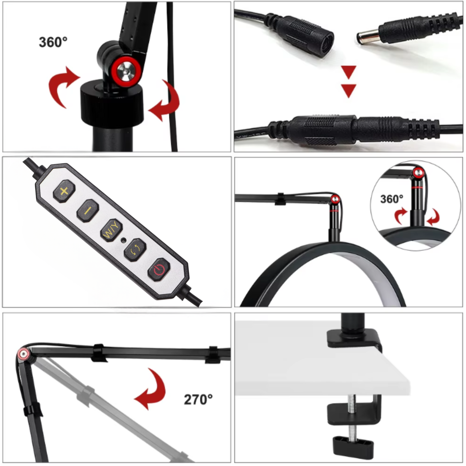 - Pode ser girado em 360 graus, proporcionando a conveniência de ajustar a iluminação na posição desejada.