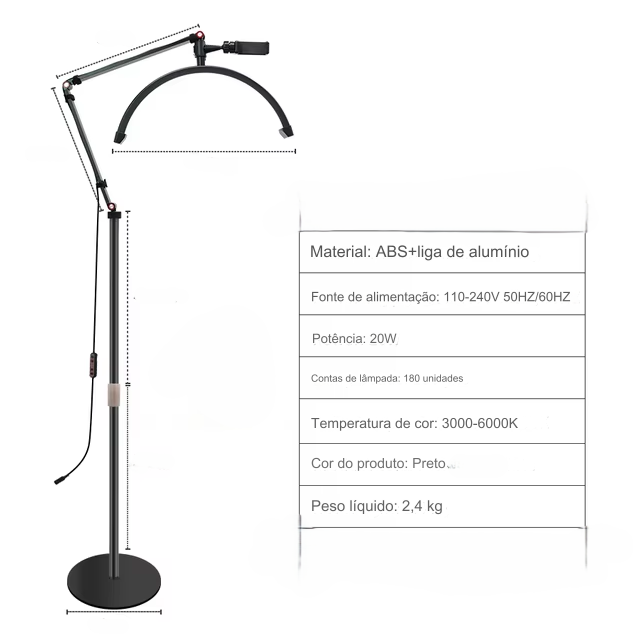 Candeeiro LED de Pé para Estética, Iluminação Profissional.