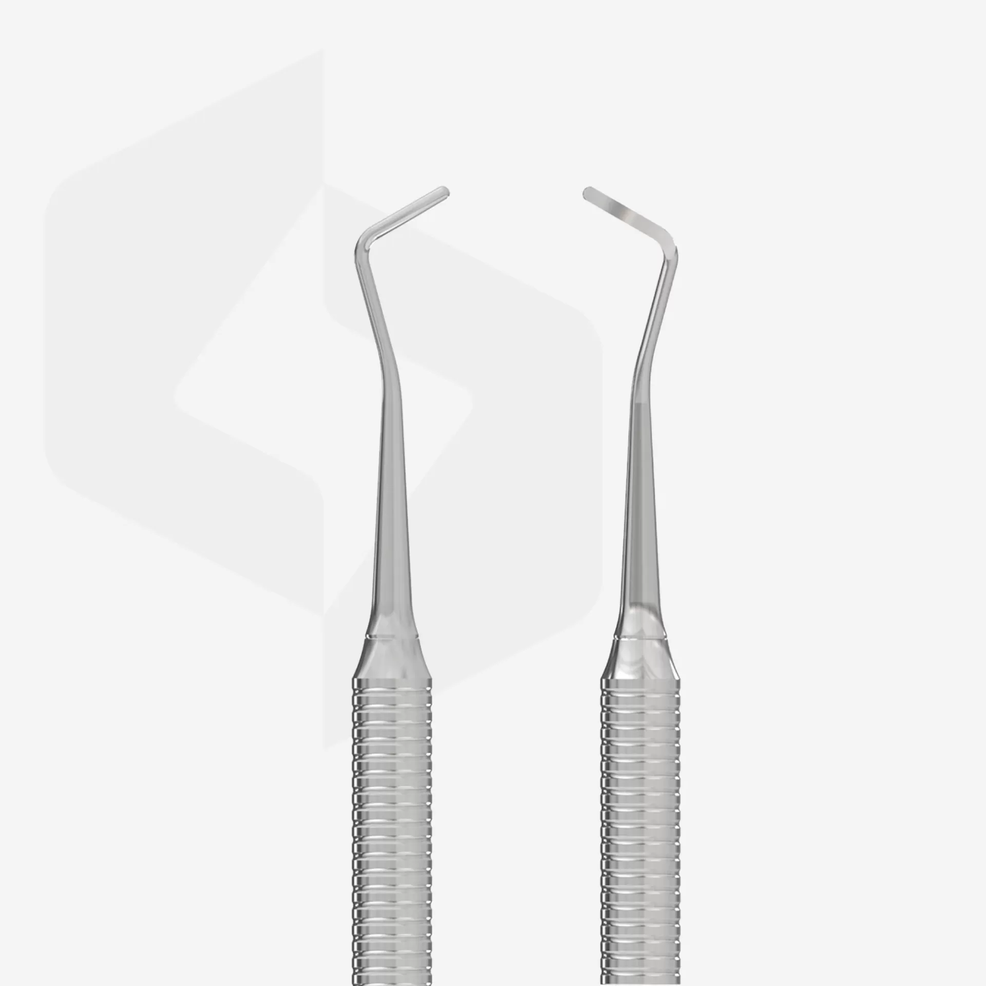 Instrumento de podologia de dupla face. A parte de trabalho "empurrador arredondado" foi concebida para limpar a placa ungueal do pterígio. A peça de trabalho "cureta" permite-lhe remover calos secos e trabalhar parcialmente com uma unha encravada. A cureta é indispensável para remover uma fina película de pterígio nas unhas, bem como para limpar o seio entre as pregas ungueais laterais e a placa ungueal. A curvatura da cureta segue a forma da placa ungueal e o "nariz" curvo do instrumento facilita a remoção das células epiteliais mortas sob as unhas, entre a placa ungueal e a cutícula. O cabo ondulado melhora a aderência da ferramenta na palma da mão. Aço inoxidável durável e resistente à ferrugem. Resistência adicional à corrosão devido ao polimento com pasta GOI. Pode ser submetido a todos os tipos de esterilização e desinfeção. Para efetuar uma pedicura médica.