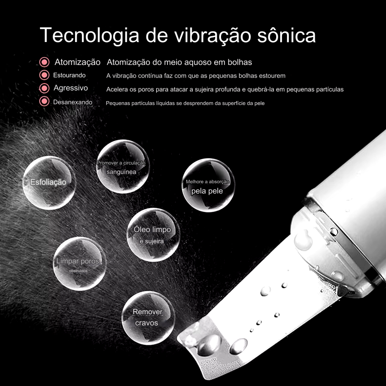Aparelho para a purificação e limpeza da pele através de ultrassom que permite um regime de cuidados da pele sem ser agressivo, invasivo e indolor.