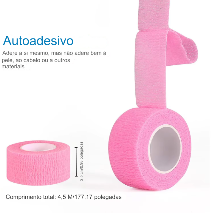 Fácil remoção e fácil de recortar, pode ser lavado com água e sabão, elástica, macia, respirável e coesiva.