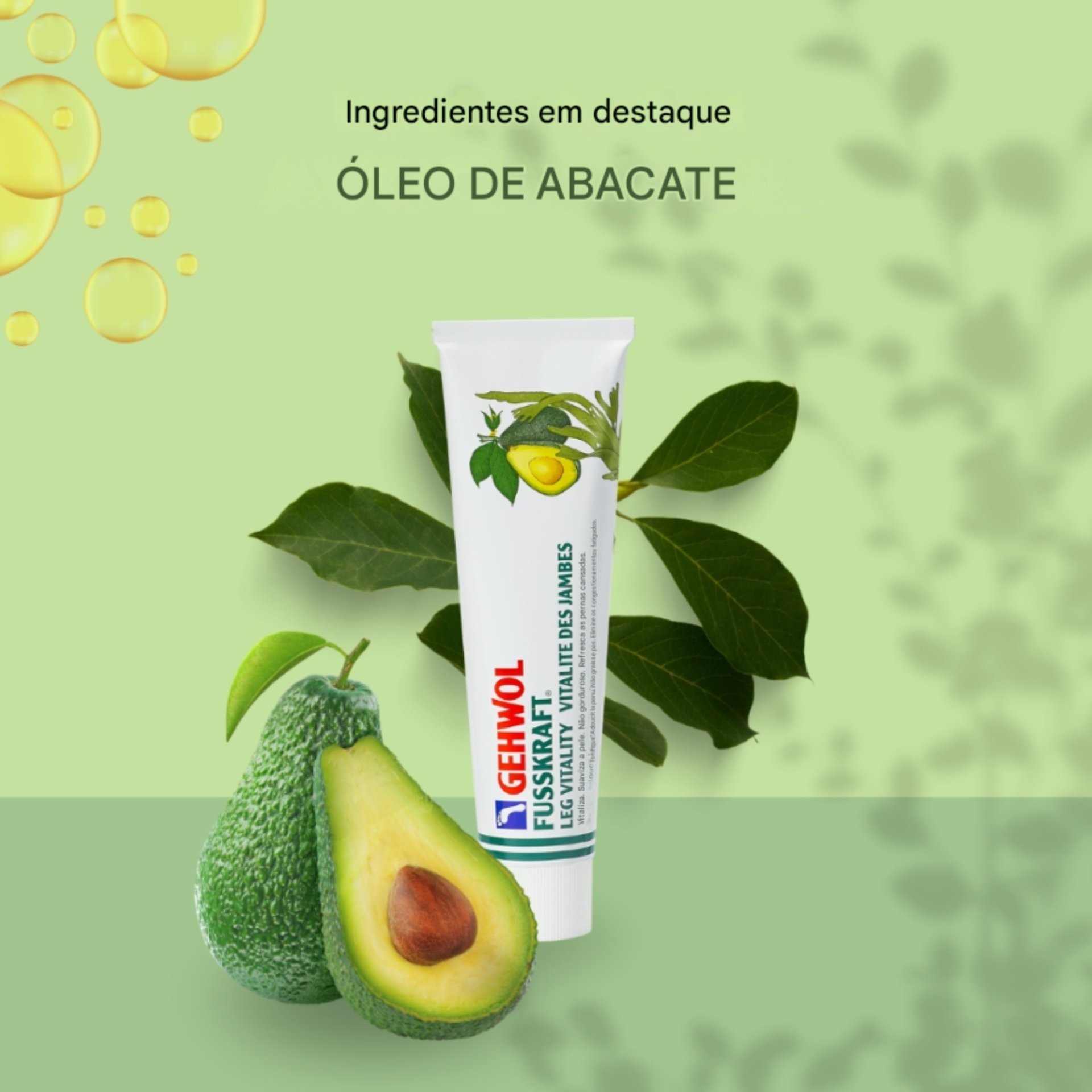 GEHWOL FUSSKRAFT Leg Vitality é um bálsamo para o cuidado diário especial das pernas e pés. É rapidamente absorvido, agradavelmente refrescante e deixa a pele bonita.