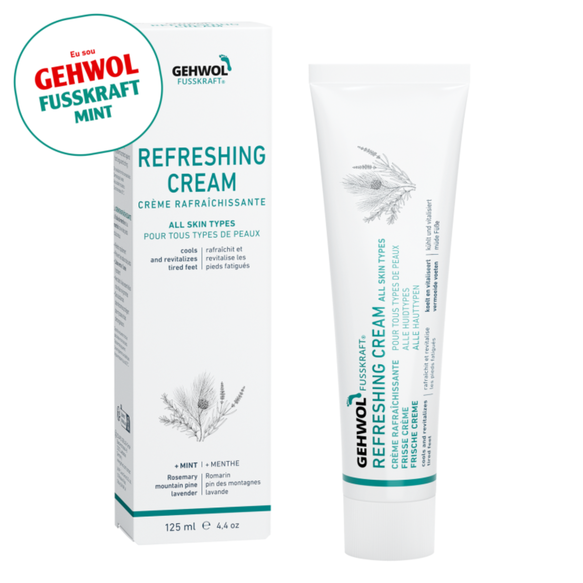 O antigo GEHWOL FUSSKRAFT MINT deixa seus pés frescos e em forma, antes ou depois de um dia agitado.