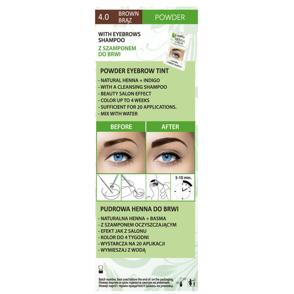 A henna em pó proporciona um efeito duradouro e intenso, melhora a condição das sobrancelhas e aumenta visualmente sua densidade. A fórmula do micropó maximiza a superfície de contato com o cabelo, graças à qual os ingredientes ativos penetram melhor em sua estrutura, proporcionando um efeito ainda mais profundo e duradouro. A hena em pó não requer o uso de um ativador agressivo, a água comum é suficiente para prepará-la.