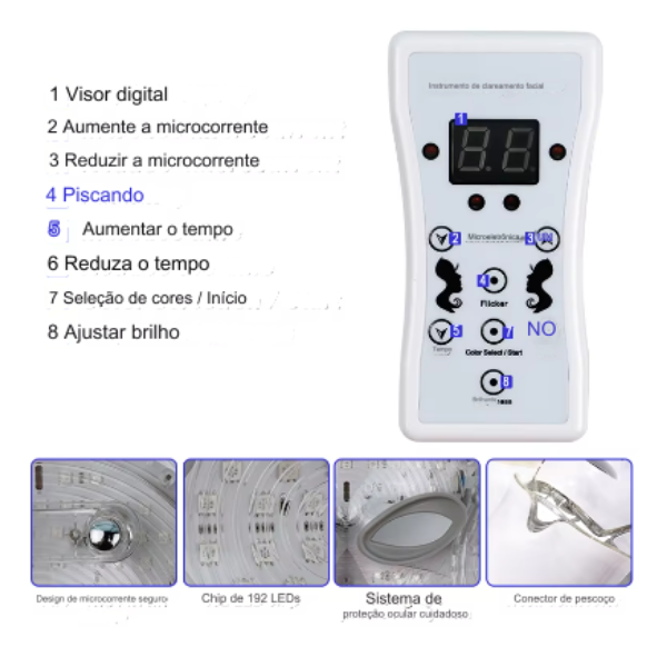 Projectado para o embelezamento facial, utiliza ondas de luz naturais que são transmitidas por LEDs na pele. A luz activa as células da pele para emBelezar sua tez. Estudos mostram que a luz entra no corpo como fótons e é absorvida pelas células da pele.