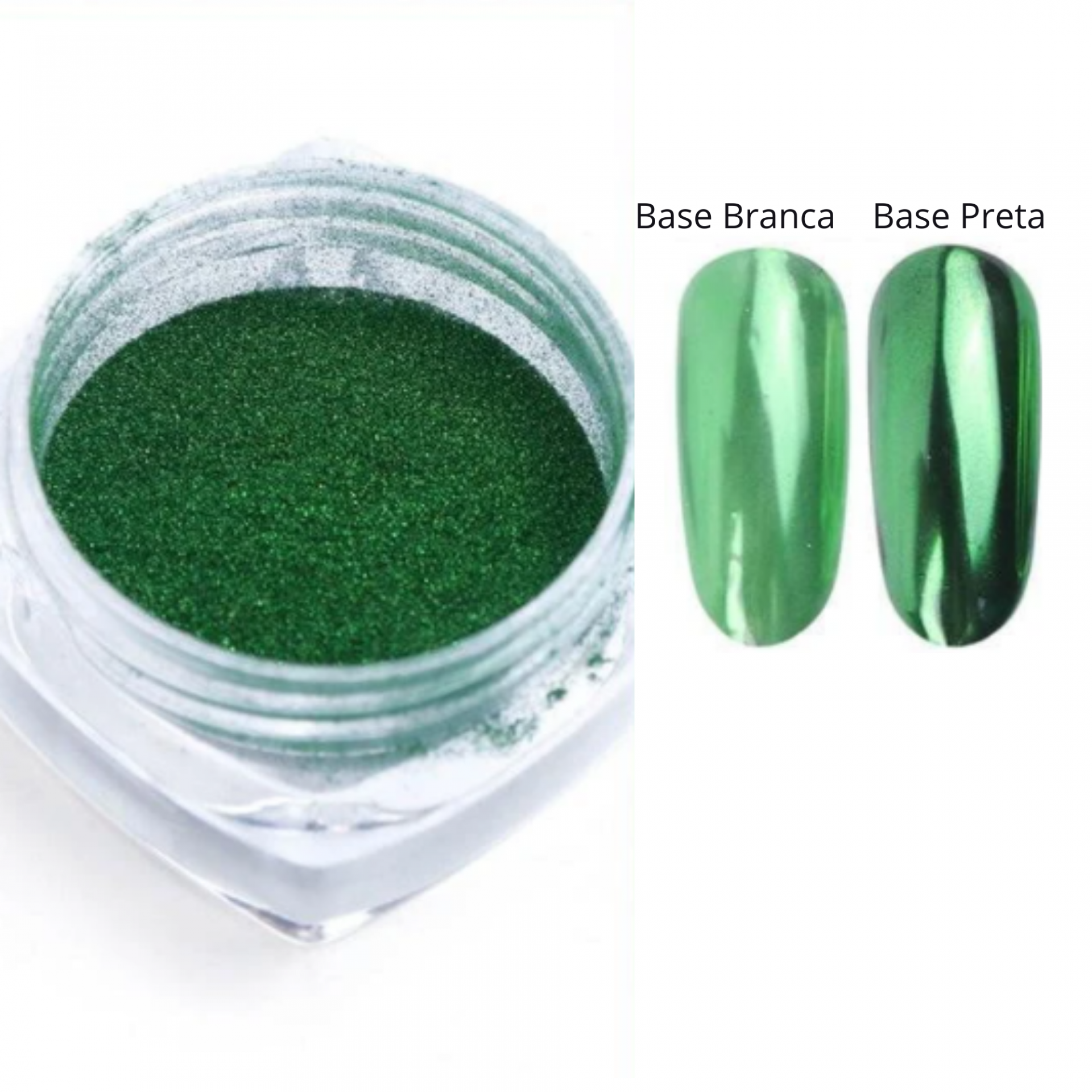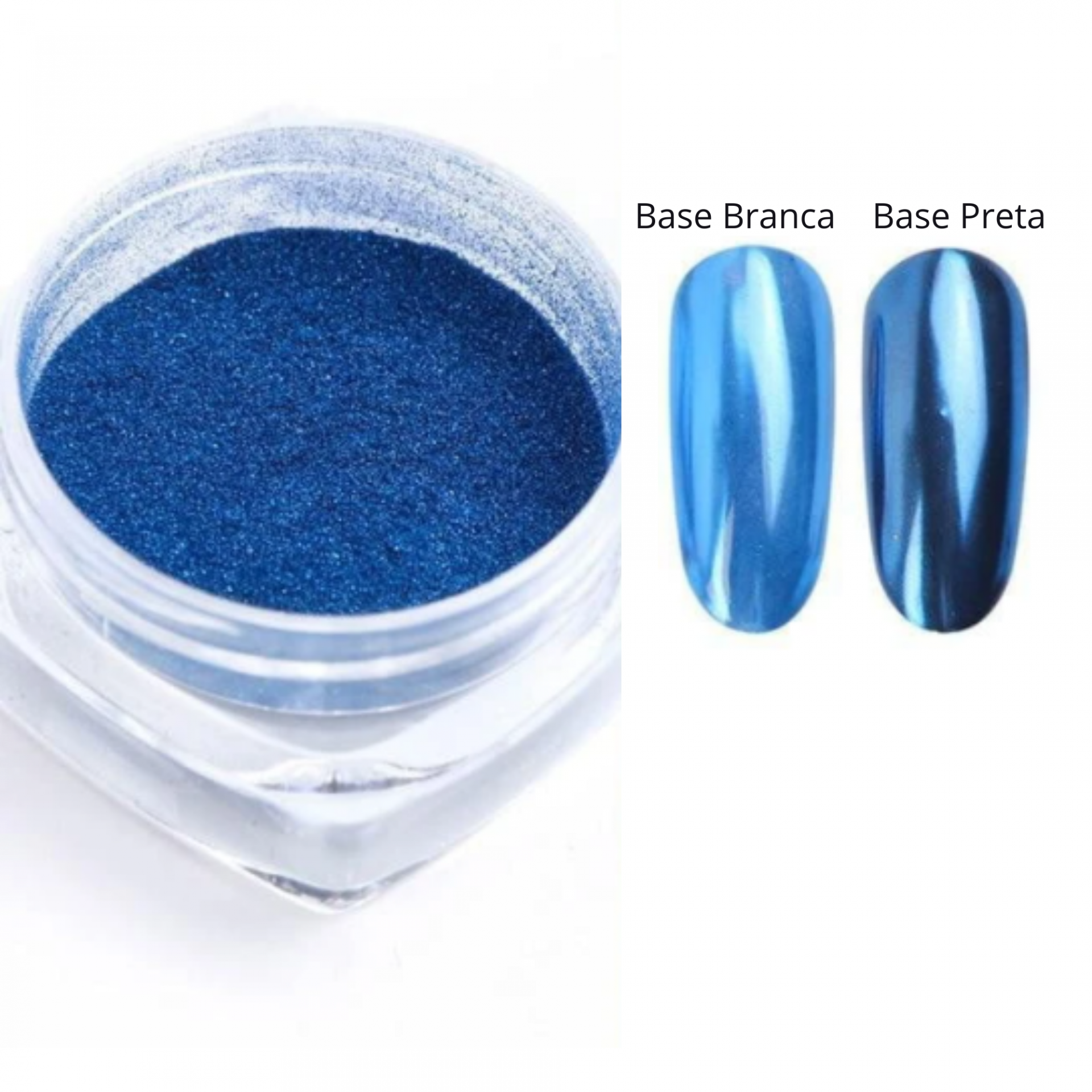 Pó de efeito espelho de aplicação simples e rápida. Disponível em 13 cores diferentes, permite com o apoio da esponja, recriar o verdadeiro efeito espelho nas unhas.