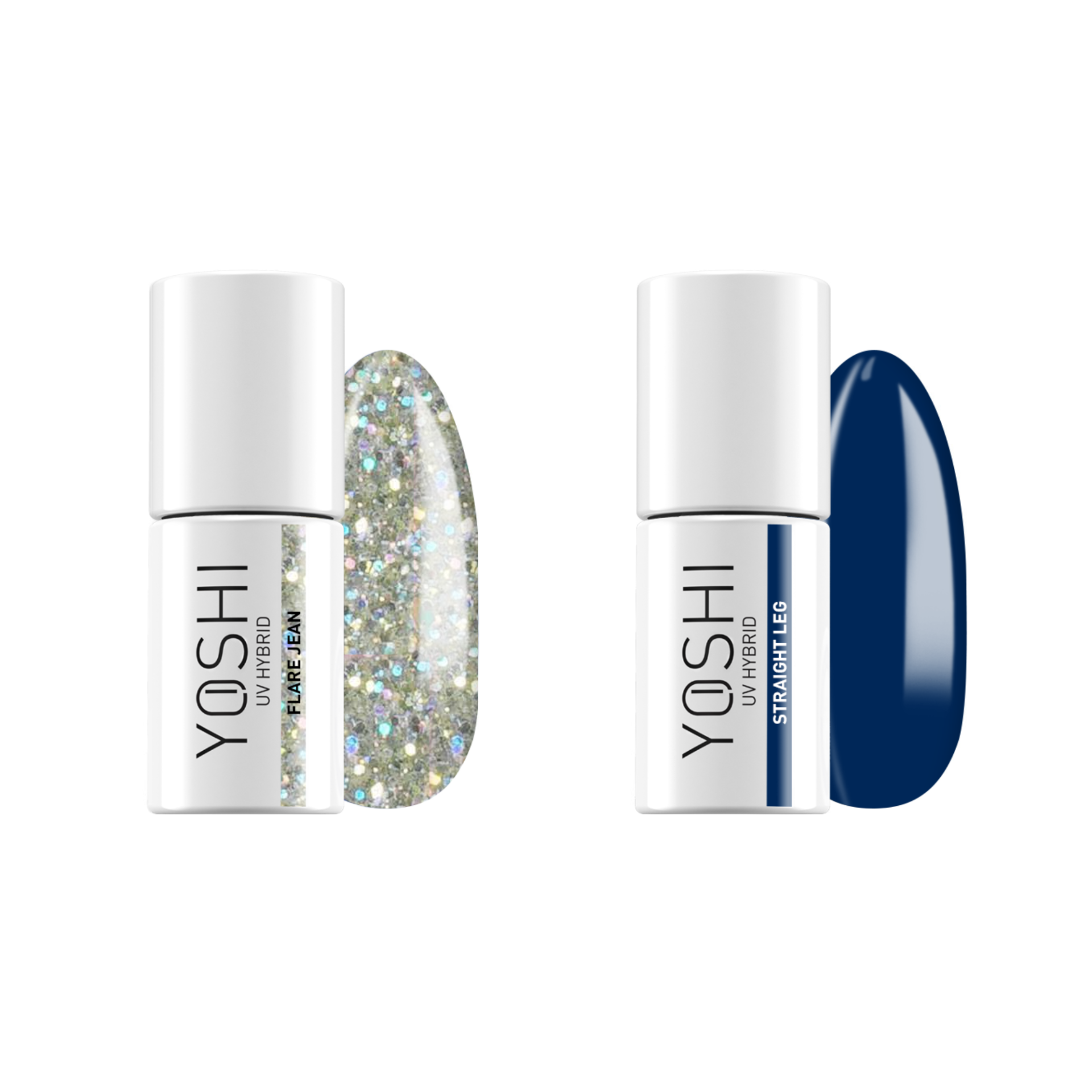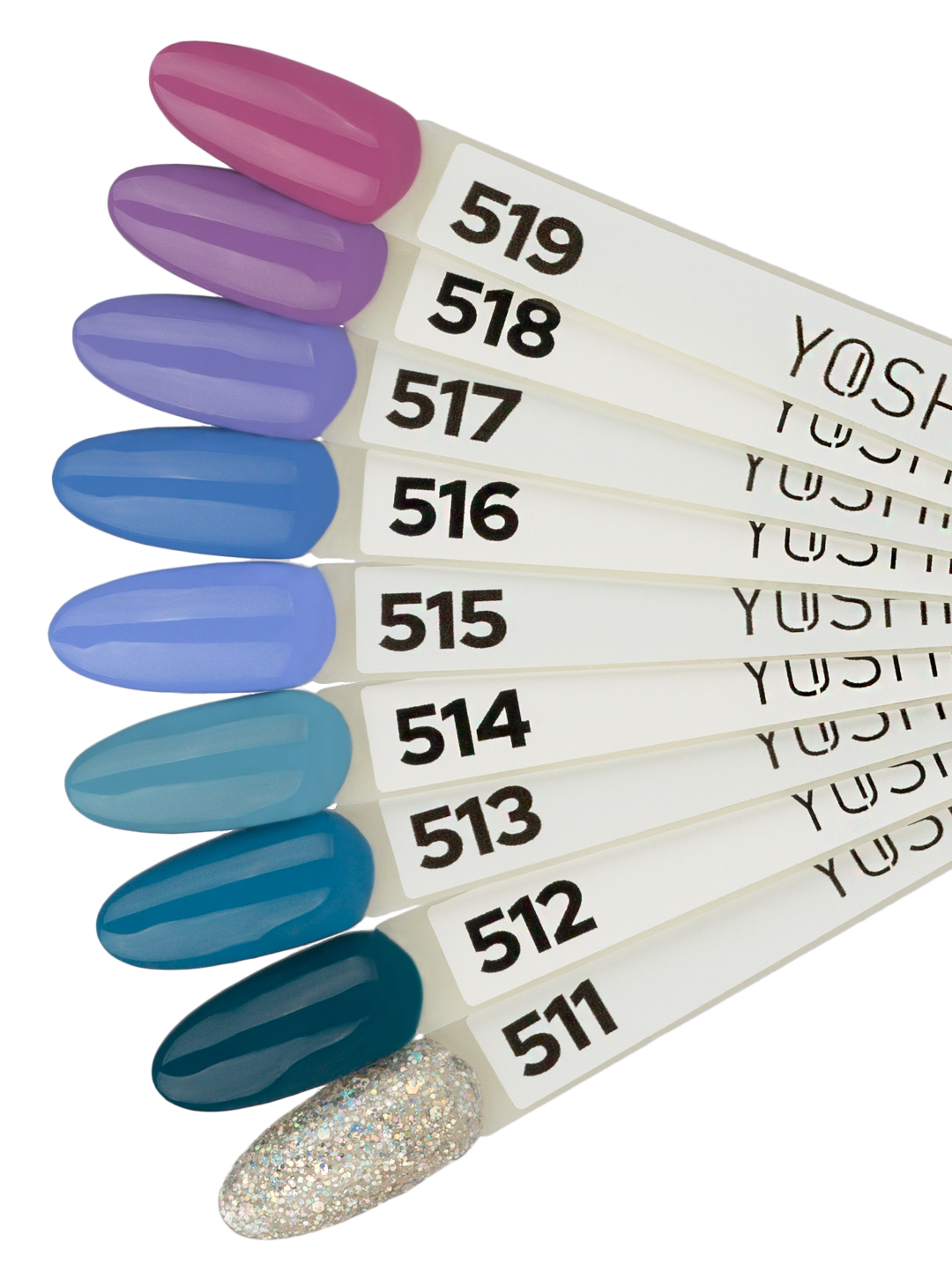 - Verniz Yoshi Flare Jean 511 - Este glitter de lantejoulas brilha com manchas em cada um dos tons "Blue Jeans", tornando-o o complemento perfeito para qualquer cor da coleção. Quer você escolha um azul brilhante, marinho profundo ou roxo sensual, o Flare Jean da Yoshi combinará com seu visual como jeans perfeitamente ajustados.