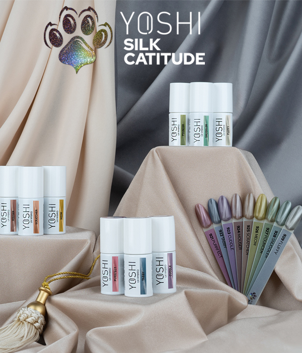 A coleção YOSHI Silk Catitude é a essência da elegância, modernidade e criatividade encapsuladas em vernizes híbridos exclusivos.
