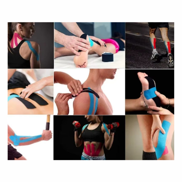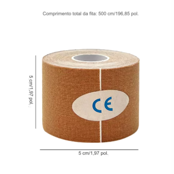 A fita / banda de cinesiologia é uma fita elástica com uma superfície adesiva bem forte em uma das extremidades, pensada exclusivamente para grudar na pele e esticar a outra extremidade ao mesmo tempo.
